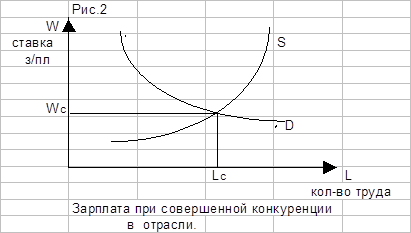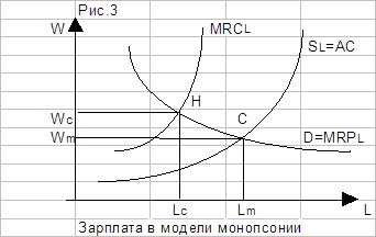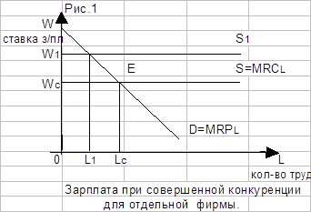 Ставка зарплаты ( Wc )определяемая спросом и предложением труда во всей отрасли и будет приниматься отдельными фирмами как данная. Но совершенная конкуренция на рынке труда скорее исключение, чем правило. Чаще встречается несовершенная конкуренция. Ее крайний случай представляет собой монопсония.