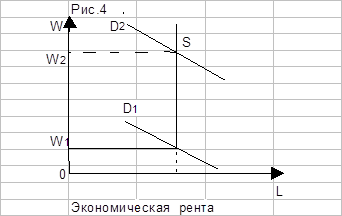 Многие известные эстрадные певцы, киноактеры, звезды спорта получают в год по несколько миллионов долларов, что значительно превышает среднюю заработную плату даже в такой стране как США. Например, суперзвезда НХЛ Марио Лемье получал в год по 6,15 млн. Долларов, а русская хоккейная звезда Сергей Федоров имеет контракт на сумму $12 млн. за 4 года, в то время как рабочий занятый на нефтедобывающем предприятии получает около $35 тыс. в год. При этом большинство из высокооплачиваемых спортсменов занимается тем делом, к которому они привыкли с детства, от которого они получают удовольствие и жить без которого не могут. Наверняка они согласились бы играть и за $50000 лишь бы не заниматься чем-либо другим. Для анализа таких ситуаций существует понятие экономической ренты. Для рынка труда экономическая рента- это разница между действительно выплачиваемой зарплатой за специфический труд и той минимальной зарплатой, которую необходимо заплатить за получение услуг этого труда. Заметим, что экономическая рента выплачивается за ресурс, предложение которого ограниченно. Хоккейные звезды обладают редким ресурсом с крайне ограниченным предложением - своим талантом игрока, и владельцы команд согласны платить за использование этого таланта гораздо больше, чем минимальная сумма, за которую спортсмен согласился бы играть. Стало быть, звезды спорта получают экономическую ренту. Проиллюстрируем эту ситуацию графически.