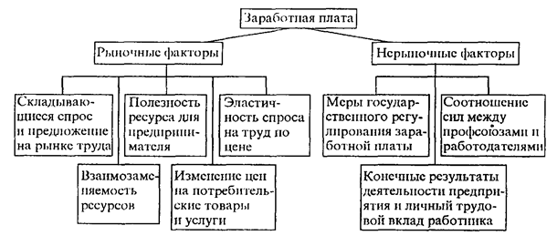 В условиях рыночной экономики на величину заработной платы воздействуют ряд рыночных и внерыночных факторов, в результате чего складывается определенный уровень оплаты труда.