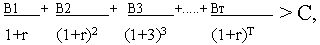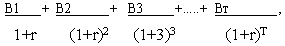 Текущая стоимость потока ежегодных выгод (В) через время (Т) может быть рассчитана по формуле: [3]