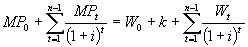 Так как k относится только к прямым затратам на подготовку, он не полностью отражает все связанные с ней издержки, потому что не учитывает времени, которое затрачивается работниками на свою подготовку и могло бы использоваться для производства текущей продукции. Разность между тем, что могло бы быть произведено (MP'0 ), и тем, что произведено фактически (MP0 ), представляет собой альтернативную стоимость времени, пошедшего на подготовку, что уравнение (6) примет вид: