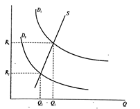 Предложение земли S абсолютно неэластично и не участвует в определении ренты. При снижении спроса на землю с D1 до D2 величина земельной ренты падает с R1 до R2. При этом можно видеть, как при падении спроса до D3 земельная рента вообще исчезает. Этот результат нам будет особенно интересен при изучении ситуации, сложившейся в ходе аграрной реформы В России, когда падение спроса на отечественное продовольствие привело к массовому обесцениванию земли как ресурса.