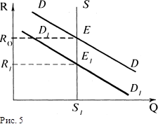 Из рис. 5 видно, что спрос на землю DD уменьшился. Кривая спроса переместилась из положения DD в положение D1D1. Равновесный уровень арендной платы упадет с уровня R0 до R1.