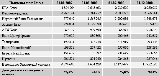 | Последствия мирового финансового кризиса для Казахстана: Взгляд на первую десятку банков. дек.2008 |