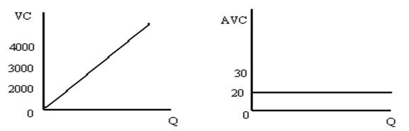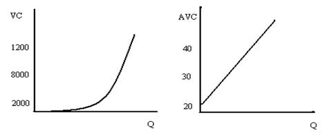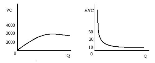 | Производство в ед.(Q) | Переменные издержки в тыс. руб.(VC) | Средние переменные издержки в руб.(AVC) |