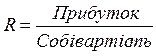 Рентабельність (R) -відношення прибутку до загальних витрат чи застосованих ресурсів