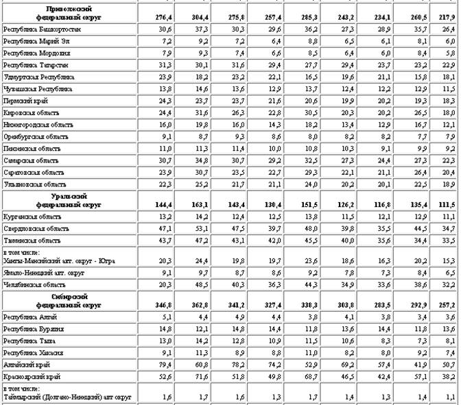 Исходя из таблицы, заметим, что за последний год несущественно изменилась группа регионов с наиболее высокими показателями уровня безработицы.