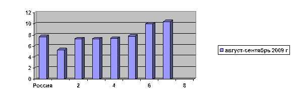 Региональная дифференциация остроты безработицы с первых же месяцев регистрации оказалась весьма значительной. Уже к концу 1991 г. самый высокий и самый низкий региональные уровни безработицы отличались более чем в 10 раз, но за прошедший период указанное различие возросло еще почти в 5 раз. В середине 1995г. самый высокий уровень безработицы был зарегистрирован в Ингушетии (20,2 %), а самый низкий в Москве (0,4%). На сентябрь 2009 года уровень безработицы, по округам Российской Федерации, самый низкий в Центральном федеральном округе, а самый высокий - в Южном федеральном округе.