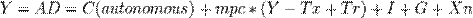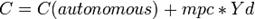 Потребительские расходы (C) делятся на две группы: автономные от размера доходов домохозяйств и составляющие определенную долю от располагаемого дохода (Yd). Последние зависят от предельной нормы к потреблению (mpc), то есть на сколько увеличиваются расходы с каждой дополнительной единицы дохода. Таким образом,