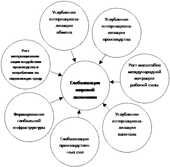 Современная глобализация мировой экономики выражается в следующих процессах (см. рисунок. 2):