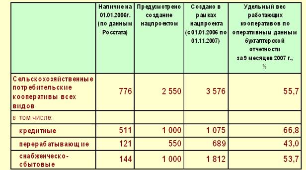 Поэтому правомерно рассматривать потребительскую кооперацию в качестве одного из основных условий возрождения российского сельского хозяйства. Именно поэтому ей уделено повышенное внимание в Приоритетном Национальном Проекте «Развитие АПК».