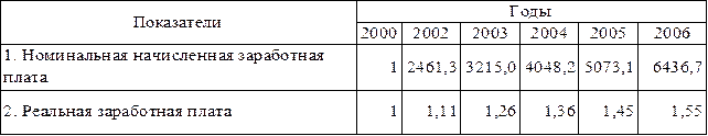¾ снижение реальной заработной платы (особенно заметное до 2000г.) к ее уровню дореформенной поры, хотя за последние годы (2001-2006 гг.) наблюдается ее некоторый рост;