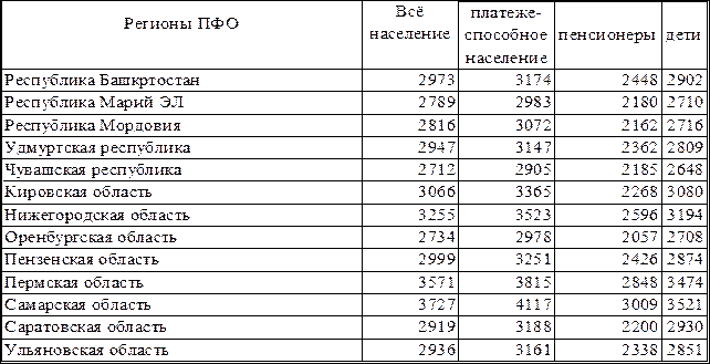 (по состоянию на 01.01.07г.) по Приволжскому Федеральному округу[7]