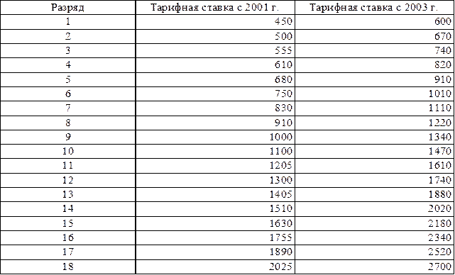 По замыслу российских законодателей МРОТ должен был способствовать установлению социальной справедливости и предотвращению произвола работодателей по отношению к наемным работникам. Однако в нашей стране он выполняет скорее декоративную функцию. Предполагалось, что эталоном организации заработной платы в России должна служить бюджетная сфера, на которую следовало ориентироваться хозяйствующим субъектам других форм собственности. Для организаций и учреждений бюджетной сферы государственная ЕТС до 2005 г. являлась документом прямого действия, а для предпринимательского сектора — лишь рекомендацией. Далее в табл. 7, 8 представлены динамика тарифной ставки (оклады) 1 разряда ЕТС, а также указаны две предпоследние ЕТС бюджетной сферы страны, включавшие в отличие от прежней методики построения тарифной ставки, а не коэффициенты. С 2005г. в стране применяются отраслевые ЕТС.