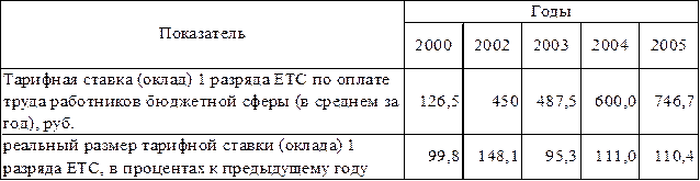 Динамика величины тарифной ставки (оклада) 1 разряда ЕТС по оплате труда работников бюджетной сферы за 2000-2005 гг