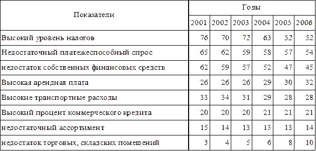 При этом следует иметь в виду, что на низкий уровень оплаты труда работников торговли большое влияние оказывают так называемые внешние факторы, ограничивающие деловую активность организаций торговли (табл. 10).