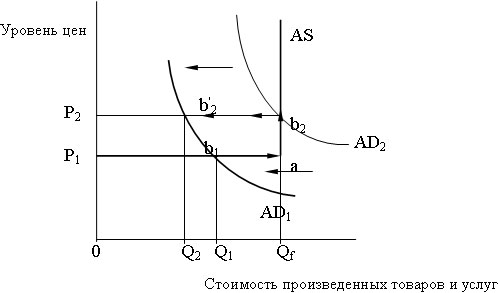 Во-вторых, как считают монетаристы, скорость обращения денег неизменна. Поэтому, если MV=PQ, где M - денежная масса; V - скорость обращения; P - цена; Q - количество товара, причем V - константа, a Q всегда в "точке полной загрузки", то стимулирование экономики путем увеличения денежной массы ведет только к росту инфляции, а сокращение денежной массы затрудняет обмен и может вызвать кризис.