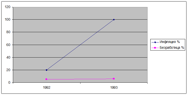 С июня по декабрь все денежно-кредитные реформы замерли. Это мы так же можем видеть по таблице 1, где уровень инфляции уже в 1993 году был просто астрономическим, по сравнению с 1992 годом, но фактически это способствовало незначительному увеличению безработицы.