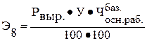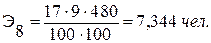 8) Экономия в численности рабочих за счет сокращения числа случаев невыполнения норм выработки (Э8 )определяется по формуле