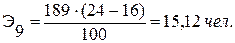 9) Относительное уменьшение численности работающих (Э9 )рассчитывается по формуле: