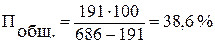 На третьем этапе определяется процент роста производительности труда по предприятию (Побщ ), достигнутый под влиянием всех факторов: