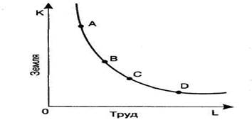 Изокванты выпуклы в направлении начала координат, поскольку хотя факторы могут быть заменяемы один другим, однако они не являются абсолютными заменителями.