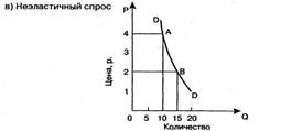 Другой крайний случай — изменение цены не отражается на величине спроса. График абсолютно неэластичного спроса (рис. 2б ) выглядит как прямая, перпендикулярная горизонтальной оси. Примером может служить спрос на отдельные виды лекарств, без которых больной не может обойтись (инсулин, наркотики)