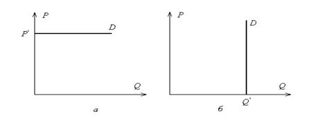 Рисунок 2 - Крайние случаи эластичности: а — спрос абсолютно эластичен, б — спрос абсолютно неэластичен