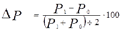 Аналогично для определения процентного изменения цены ∆P в выбранном интервале получаем: