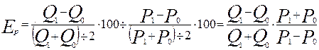 где ∆Q и Q СР — приращение и средняя величина спроса,