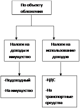 Классификация по объектам налогообложения . По объектам налогообложения налоги делятся на налоги с оборота, налоги на прибыль (доход), налоги на имущество, налоги на фонд оплаты труда. К налогам с оборота относятся налог на пользователей автодорог, налог на содержание жилья и объектов социально-культурной сферы, налог на добавленную стоимость. К налогам на прибыль относятся налог на прибыль предприятий (организаций), налог на доходы, удерживаемый у источника, налог на игорный бизнес. Налог на имущество предприятий, земельный налог, налог на имущество физических лиц – налоги на имущество, а страховые взносы в Пенсионный фонд, страховые взносы в Фонд государственного социального страхования, страховые взносы в Государственный фонд занятости населения, страховые взносы в фонды обязательного медицинского страхования, сбор на нужды образования – налоги на фонд оплаты труда.