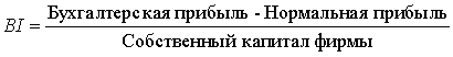 Индекс Бэйна показывает экономическую прибыль на один доллар собственного инвестированного капитала. Он определяется как: