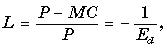 показатель монопольной власти Лернера L = (P-MC)/P, который показывает степень превышения цены товара над предельными издержками его производства.