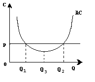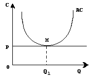Ниже показаны три возможных варианта положения фирмы на рынке . Если линия цены Р лишь касается кривой средних издержек АС в минимальной точке М , то фирма в состоянии лишь покрыть свои минимальные издержки . Точка М в данном случае является точкой нулевой прибыли .