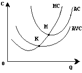 Обратим внимание , что когда фирма ничего не производит , она несет только постоянные издержки . Если же она производит продукцию , то к постоянным издержкам добавляются переменные , но при этом фирма получает и некоторый доход от продаж . Поэтому , чтобы понять , когда фирма минимизирует убытки , надо сопоставить уровень цены не только со средними издержками (AC ) , но и со средними переменными издержками (AVC ) .