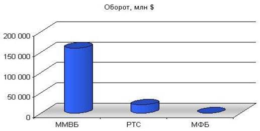 Различия в объемах торгов на биржах сложным образом связаны с различиями клиентуры и характером операций. Считается, что на РТС, где торговля ведется в долларах, оперируют, в основном, инвестиционные банки, работающие с пакетами акций российских предприятий. В то же время на ММВБ доминируют российские капиталы и российские биржевые игроки. Возможно, поэтому на ММВБ существуют два разных индекса: стандартный СФИ Сводный фондовый индекс ММВБ (СФИ) - взвешенный по рыночной стоимости индекс капитализации акций, включенных в котировальные листы ММВБ. Методика расчета индекса составлена в традиционном стиле капитализационно-взвешенных индексов (таких как S&P, Emerging Market Indices, Dow Jones Global Indexes, семейство DAX). и ММВБ10 Ценовой индекс, рассчитываемый как среднее арифметическое изменения цен 10 наиболее ликвидных акций, допущенных к обращению в Секции фондового рынка (вне зависимости от их принадлежности к котировальным листам ММВБ). Состав корзины индекса определяется один раз в квартал на основании 4 показателей ликвидности. , рассчитанный на day-трейдеров, и позволяющий отслеживать малейшие колебания цен основных финансовых инструментов.