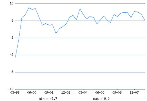 | темпам роста реального объема (ВВП) за 2007год в %. |