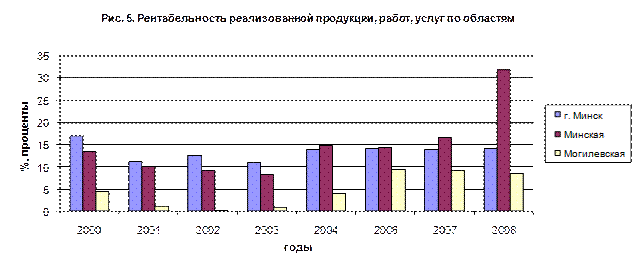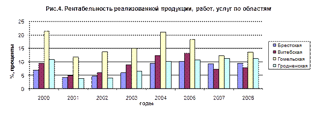 Таблица 4 Рентабельность реализованной продукции, работ, услуг по областям (в процентах), без учета малых предприятий.