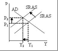 Возникает вопрос: почему же правительства (особенно в развивающихся странах и в странах с переходной экономикой) увеличивают предложение денег, представляя себе негативные последствия этого процесса? Дело в том, что эмиссия денег проводится в целях финансирования дефицита государственного бюджета, что и является объяснением увеличения темпов роста денежной массы и основной причиной высокой инфляции в развивающихся странах и странах с переходной экономикой. Если инфляция вызвана сокращением совокупного предложения (что происходит в результате увеличения издержек), то такой тип инфляции называется инфляцией издержек (cost-push inflation). Инфляция издержек ведет к уже известной нам ситуации стагфляции - одновременному спаду производства и росту уровня цен (рис. 1.3.)