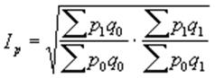 Индекс Фишера представляет собой геометрическую среднюю из индекса Ласпейреса и индекса Пааше. Этот индекс в известной мере усредняет показатели, тем самым нивелируют недостатки того и другого индекса.