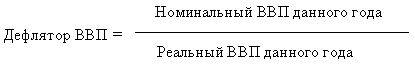 Дефлятор – индекс цен, используемый для определения реального объема ВВП и соответствующей корректировки экономической политики. Дефлятор ВВП равен отношению номинального ВВП (исчисленного в текущих ценах) к реальному (в неизмененных ценах) в текущем периоде: