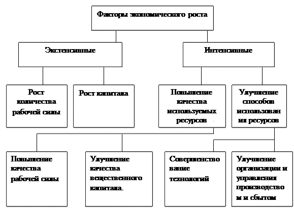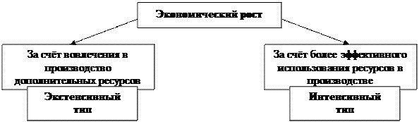 Качество и темпы экономического роста непосредственно зависят от его типа. Можно выделить экстенсивный и интенсивный типы (рис. 2.2).