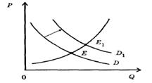Предположим, что совокупный спрос начал расти, это приведет к росту производства, снижению безработицы, уровень цен будет очень медленно повышаться (это объясняется тем, что существует огромное количество незадействованных трудовых и материальных ресурсов: ведь вчерашние безработные не будут сразу требовать повышения заработной платы).
