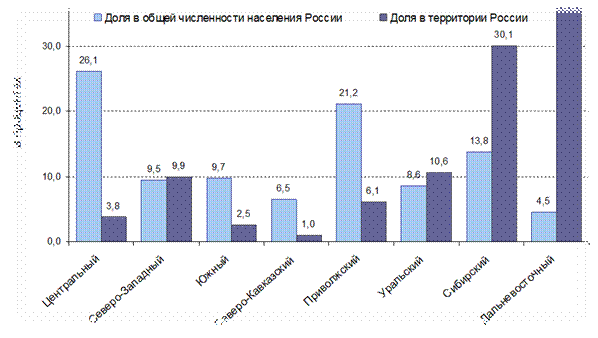 Рис. 4 Численность населения и территория на 1 января 2010г.