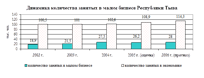 В 2004 году в малом бизнесе было занято 27,5 тыс. человек (с учетом лиц, ведущих фермерское хозяйство), или 26,8 процента от общего количества занятых в экономике республики. В связи с сокращением аратских (фермерских) хозяйств в 2 раза количество занятых в данном секторе соответственно снизилось на 60 процентов, что повлияло на общее количество занятых в малом предпринимательстве.