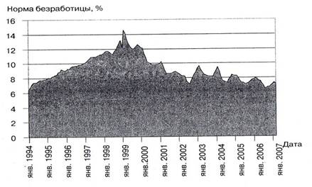 Рисунок 4.3 – Норма безработицы в России, 1994 – 2007 гг.