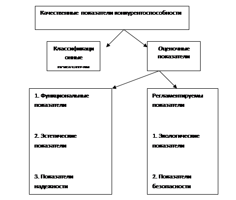 Качественные показатели конкурентоспособности характеризуют свойства товара, благодаря которым он удовлетворяет конкретную потребность. Все качественные показатели можно подразделить на классификационные и оценочные Наиболее значимые качественные показатели представлены на рисунке 1.1.