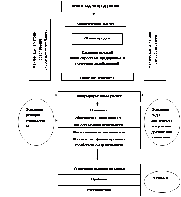 Конкретные механизмы (модели) коммерческого расчета для обеспечения эффективного управления функционированием и развитием промышленного предприятия определяются на основе его глобальной политики, целей и стратегий, формируемых на высшем уровне управления предприятия. Поэтому установление внутренних взаимосвязей элементов соответствующей модели предусматривает необходимость их рассмотрения при централизованном управлении.