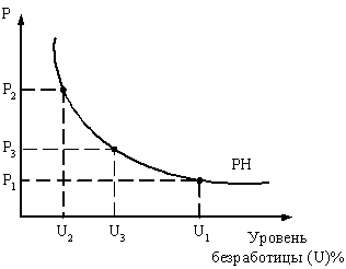 При этом цена возрастает до Р2 , т.е. увеличивается инфляция. Если правительство проводит антиинфляционную политику цены снижаются до Р3 , а безработица – до U3 . Если инфляция продолжается более длительное время (свыше 5 лет), она может расти, несмотря на высокий уровень безработицы.