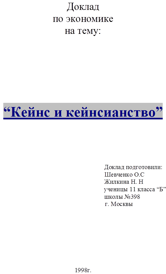 ДЖ. М. КЕЙНС И ЕГО ТЕОРЕТИЧЕСКАЯ СИСТЕМА